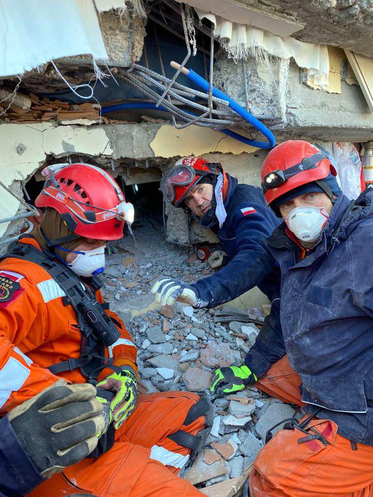 – Tutaj na miejscu w Turcji od samego początku były bardzo trudne warunki. Temperatura w nocy -10 stopni i bardzo silny wiatr. Nie dojechaliśmy do miejsca docelowego w Turcji. Zablokowało nas w miejscowości Besni i nie pozwolili nam dalej jechać. Decyzja dowódcy: zostajemy tutaj aby działać. Obecni tam strażacy i miejscowi mieszkańcy przyjęli nas bardzo dobrze. Część z nas rozkładała obóz na miejskim stadionie, a część od razu ruszyła do działań. Łącznie nasza grupa znalazła i wydobyła 12 żywych osób. Najmłodsza to 29 – letnia kobieta. Pomimo naprawdę ciężkich warunków, każdy tu obecny dał z siebie ponad 100 procent. Pracowaliśmy na zmiany cały czas, noc i dzień i tak aż do końca prawie, niemal do wycieńczenia. Cały czas ryzykując własne życie, bo taka jest prawda. Jednak chęć uratowania tych ludzi pchała nas do przodu i dodawała sił. Jestem bardzo szczęśliwy, że mogłem uczestniczyć w tej misji i pomoc tym ludziom. Ludzie miejscowi, mówimy na nich „lokalsi” bardzo dobrze nas traktują, donosili nawet na miejsce działań ciepły chleb, kawę, nawet gorące mleko.
