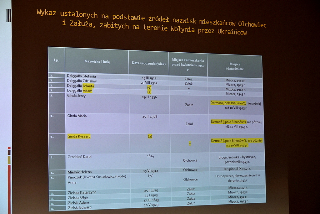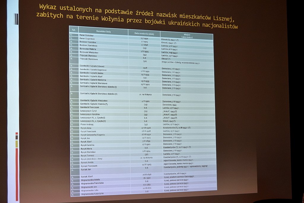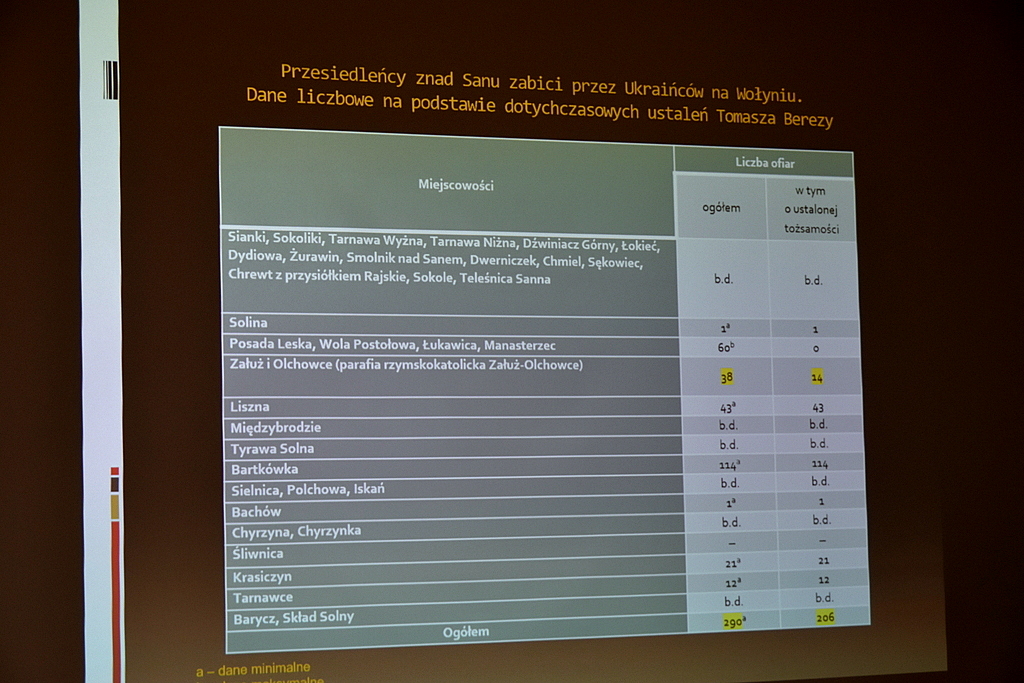 Po przerwie Małgorzata Gliwa zreferowała wciąż trwające prace poszukiwawcze IPN nakierowane na odnalezienie ofiar zbrodni w Mucznem z 15 sierpnia 1944 r. Dalej miejscowy historyk MH Andrzej Romaniak przedstawił prezentację fotografii autorstwa Stanisława Potockiego, ukazujących obrazy tuż po dokonanych atakach UPA na wsie Hłomcza i Łodzina we wrześniu 1946 r. Tuż potem pochodzący Sanoka Grzegorz Leszczyński opis tło i przebieg napadu UPA na Prusiek z nocy 19/20 października 1946 r. Na koniec ks. prof. dr hab. Józef Marecki w poruszający sposób skrócił treść swojej publikacji pt. „Misterium iniquitatis. Osoby duchowne i zakonne obrządku łacińskiego zamordowane przez ukraińskich nacjonalistów w latach 1939–1945”. Moderatorem podczas prelekcji duchownego i historyka zarazem był dr hab. Krzysztof Kaczmarski.